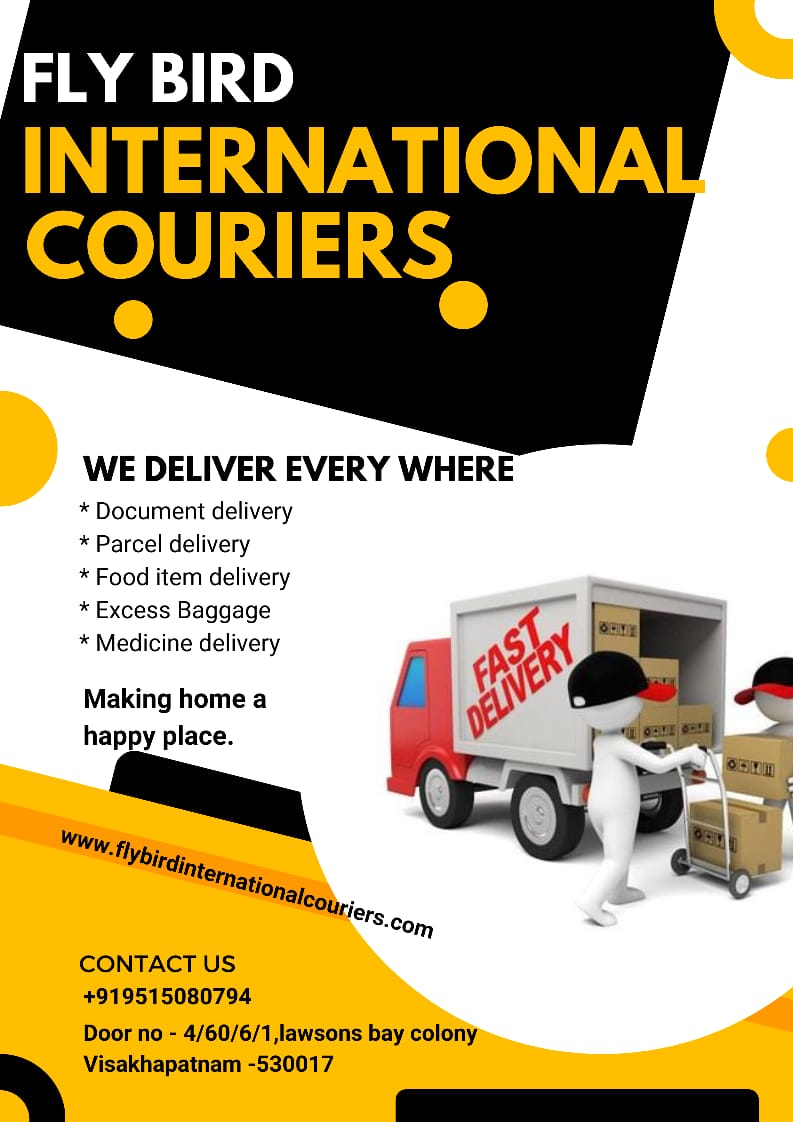 Flybird International Courier Service provides you with very affordable domestic and international courier services in Rajahmundry. We specialize in safe shipping of all types of goods, including corporate gifts, sarees, home appliances, sweets, namkeens, pickles, spices, puja essentials, handicrafts, furniture, accessories, books, electronic items, dress material, and more. Whether you need to send a package to the USA, UK, Germany, Canada, Singapore, Australia, or domestically within India, we've got you covered.